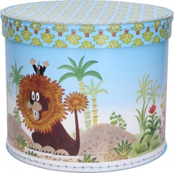 Wir präsentieren Ihnen die runde Box mit Motiv von Maulwurf und Löwe, die nicht nur ein ästhetisches, sondern auch ein praktisches Accessoire für jedes Kinderzimmer ist. Dank ihrer kompakten Maße von 25 x 25 x 21 cm bietet sie genügend Stauraum für Spielzeuge, Bücher oder andere Kinderschätze.