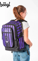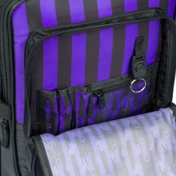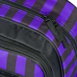 Der Schulrucksack CUBIC WEDNESDAY kombiniert ein markantes Design in Schwarz-Lila-Streifen mit durchdachter Ergonomie für täglichen Komfort. Dank vollständig verstellbarer Schulter-, Brust- und seitlicher Kompressionsriemen lässt sich der Rucksack leicht an die Statur anpassen, während die atmungsaktive Rückenpartie das Tragen auch bei voller Beladung erleichtert.