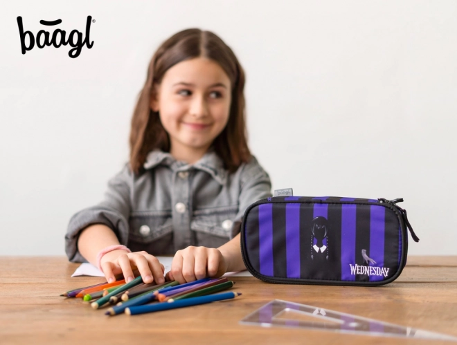 Suchen Sie ein langlebiges und bersichtliches Etui für die Schule? Dieses BAAGL-Etui mit dem ikonischen Wednesday-Motiv kombiniert modernes Design mit praktischen Details für den täglichen Gebrauch. Dank der stabilen Ausführung behält es hervorragend die Form und schützt Schreibutensilien.