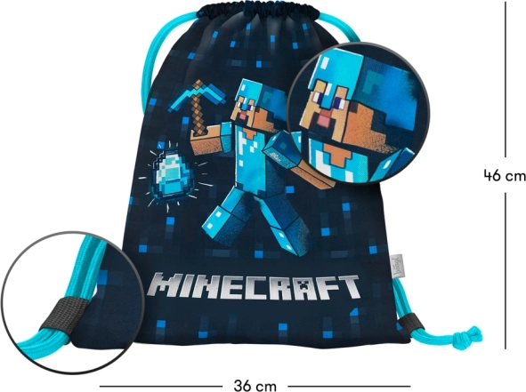Der stylische Beutel MINECRAFT Blue Axe ist ideal für die Schule, Vereine und Freizeitaktivitäten. Dank des strapazierfähigen und abwischbaren Materials hält er dem täglichen Gebrauch stand und lässt sich leicht sauber halten. Stabile Zugkordeln dienen gleichzeitig als Schulterriemen, sodass Sie den Beutel bequem auf dem Rücken tragen können.