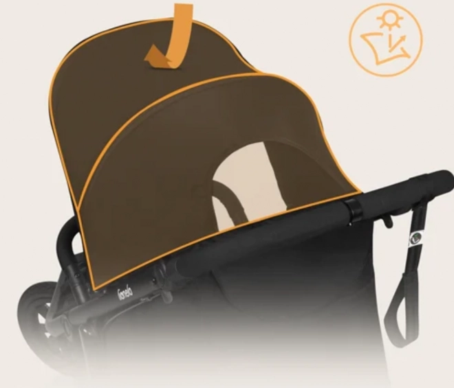 Das wasserabweisende Verdeck mit erweiterbarem Reißverschlusspanel schützt das Kind vor Sonne und Regen. Das magnetische Sichtfenster ermöglicht eine schnelle Sichtkontrolle ohne zu stören.