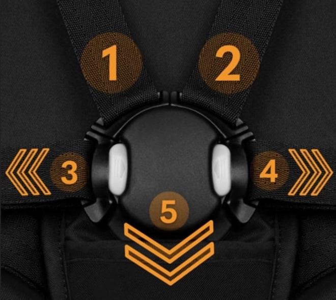 Für Sicherheit sorgen verstellbare 5-Punkt-Gurte mit magnetischem Verschluss, ein Sicherheitsbügel und ein in 9 Stufen verstellbarer Schiebebügel. Die Pflege ist einfach – Polsterung und Korb können per Hand bei 30 °C gewaschen werden.