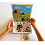 Das Spiel motiviert Kinder, fröhliche Geschichten vom Bauernhof zu erzählen, erweitert den Wortschatz und führt ganz natürlich zum Üben von Buchstaben und Zahlen.