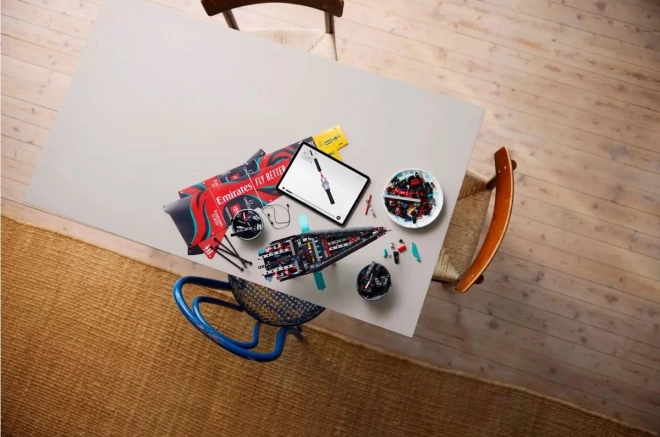 Das Modell LEGO Technic Yacht Emirates Team New Zealand AC75 bietet ein authentisches Bauerlebnis für erwachsene LEGO-Enthusiasten. Dieses Bausteinmodell mit realistischen Elementen ist mit zwei Segeln, einem drehbaren Mast und einem komplexen Takelage ausgestattet, die das elegante Erscheinungsbild eines seglerischen Vorbilds erzeugen: