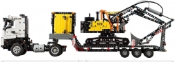 Abklappbare Rampen erleichtern das Aufladen des Baggers. Bewege die Ladestation mithilfe der Schaufel und Ketten und kreiere Szenarien einer modernen Baustelle.
