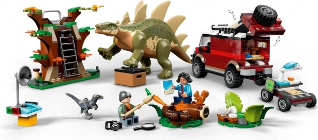 Tauche ein in die Welt der Dino-Abenteuer mit dem Set LEGO Jurassic World Dinomission: Entdecke den Stegosaurus. Kinder ab 6 Jahren genießen kreatives Bauen und Rollenspiel mit der großen Stegosaurus-Figur mit beweglichen Beinen, einem kleinen Velociraptor, den Minifiguren Ben und Sammy, einem Geländewagen mit Anhänger und einem Baum mit Aussichtsplattform. Außerdem sind viele Zubehörteile für realistische Geschichten enthalten.