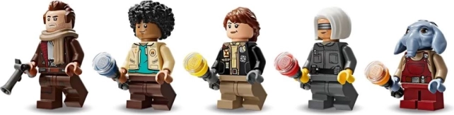 Entdecke das sammelwürdige Raumschiff Onyx Cinder, das mit realistischen Funktionen und durchdachten Details überzeugt. Drehbare Triebwerke wechseln zwischen Lande-, Start- und Flugmodus, ein Paar Stud-Shooter und zwei drehbare Türmchen mit vier Läufen bringen Action in jede Mission. Im Cockpit nimmt Yoda Platz, während Wim, Fern, KB und Neel in der Kabine unterkommen.