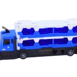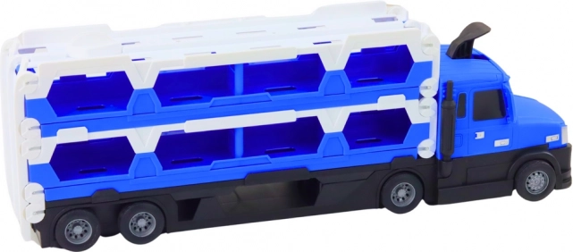 Dieser multifunktionale Lkw in attraktivem Blau kombiniert Autotransporter und 2-in-1-Rennstrecke. Ausgeklappt erhalten Sie eine bis zu 211 cm lange Strecke – ideal für dynamische Duelle und das Trainieren von Fahrkünsten. Realistische Lichter und Geräusche verstärken die Atmosphäre wie bei echten Rennen.