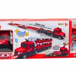 Dieser multifunktionale Autotransporter bietet doppelten Spielspaß. Im Lkw-Modus transportiert er Autos, und aufgeklappt entsteht eine lange Rennstrecke für spannende Fahrten. Licht und Sound verstärken die Atmosphäre von Rennen und Rettungsmissionen.
