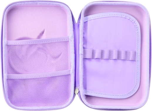 Die durchdachte Innenaufteilung erleichtert Ordnung und den schnellen Zugriff auf Schreibutensilien. Zwei Netztaschen eignen sich ideal für Lineale, Radiergummi oder kleine Notizblöcke, während sechs separate Schlaufen Stifte und Buntstifte stets an ihrem Platz halten. Das Mäppchen ist perfekt für die Schule, den Kunstunterricht und kreatives Arbeiten zu Hause.