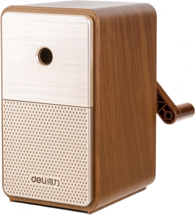 Der manuelle Anspitzer in brauner Holzoptik ist ein stilvolles Accessoire für jedes Arbeitsumfeld. Dank des großen Spänebehälters müssen Sie ihn nicht häufig leeren, was eine kontinuierliche Nutzung ohne unnötige Unterbrechungen ermöglicht. Diese Lösung minimiert den Bedarf an häufigem Reinigen, was vor allem jene schätzen werden, die den Anspitzer intensiv verwenden.