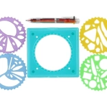 Mit diesem Inspiro-Set erstellen Sie beeindruckende Spiral-Muster, Mandalas und einzigartige geometrische Zeichnungen. Kombinieren Sie verschiedene Rädchen und wiederholen Sie Motive so oft Sie möchten – das Ergebnis ist stets originell und farbenfroh. Dank des Sechsfarben-Stifts heben Sie Details leicht hervor und verleihen den Formen Dynamik.
