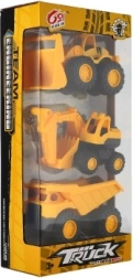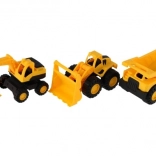 Bagger, Bulldozer und Kipper – eine komplette Mini-Baustelle in einer Verpackung für realistisches Spiel.