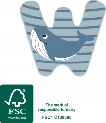 Hervorragender Holzbuchstabe W mit Wal-Motiv ist die perfekte Ergänzung für jedes Kinderzimmer. Sichere abgerundete Kanten und angenehmes Design werden jeden kleinen Entdecker begeistern.