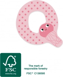 Der Buchstabe ist mit einer niedlichen Qualle verziert, die den Kindern viel Spaß und Inspiration zum Spielen bietet.