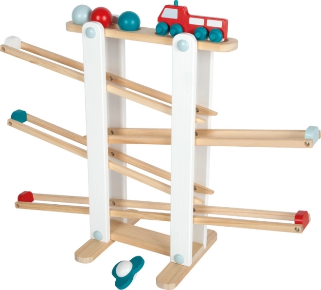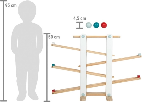Diese große Holzkugelbahn von Small Foot sorgt bei Kindern für ständige Überraschungen und Freude beim Beobachten von Kugeln und Auto, wie sie von Etage zu Etage rollen. Natürliches Holz in Kombination mit kräftigen Farben wirkt modern und zeitlos und passt perfekt in jedes Kinderzimmer. Die stabile Verarbeitung aus Massivholz garantiert eine lange Lebensdauer und sicheres Spielen.