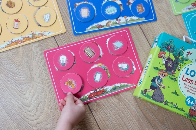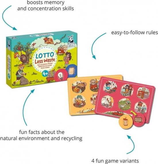 Geben Sie Abfällen ein neues Leben und bringen Sie Kindern bei, was in Kunststoff, Papier, Glas, Bioabfall und Elektroschrott gehört. Das Spiel Captain Smart Loto – Saubere Planet ist einfach und unterhaltsam für 1–6 Spieler ab 4 Jahren, mit niedlichen Illustrationen und vier Schwierigkeitsvarianten. Die Aufgabe besteht darin, Chips den richtigen Stellen auf den Spielplänen zuzuordnen, wobei Sie sich über die Bilder unterhalten und so ganz natürlich den Wortschatz erweitern können.