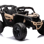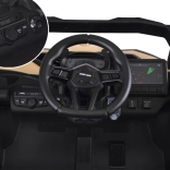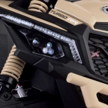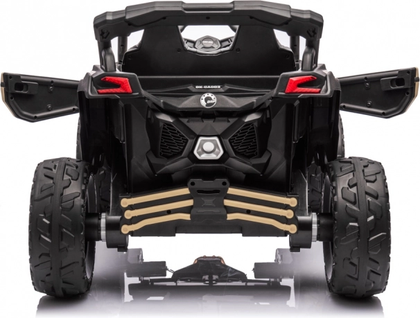 Das Offroad-Buggy für kleine Abenteurer setzt auf 4x4-Antrieb mit vier starken Motoren und Stoßdämpfern vorne und hinten. Weiche EVA-Reifen dämpfen Unebenheiten hervorragend und sorgen zusammen mit sanftem Start und Bremse beim Loslassen des Pedals für ein sicheres Fahrerlebnis. Für Komfort sorgen der ergonomisch geformte Sitz aus Ökoleder und Fünfpunktgurte.
