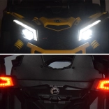 Der kleine Fahrer genießt Lichteffekte (vordere und hintere LEDs), Motorgeräusche beim Start und integrierte Melodien. Auf dem Armaturenbrett befinden sich ein Multimediapanel mit USB und MP3, eine Batteriestandsanzeige, die Wahl schnell/langsam, Fahrt vorwärts/rückwärts, Schalter 2x2/4x4 sowie Umschalter manuell/Fernsteuerung. Eltern steht eine 2,4-GHz-Fernbedienung mit Beschleunigung in 3 Stufen und einer Sicherheits-Stop-Taste zur Verfügung.