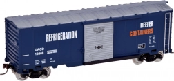 Dieser Kühlgüterwagen für Modelleisenbahnen im Maßstab H0 1:87 bietet das authentische Erscheinungsbild echter „Reefer“-Containerwagen. Die blau-graue Ausführung mit markantem Aufdruck REFRIGERATION und REEFER CONTAINERS sowie funktionierenden Schiebetüren unterstreicht das realistische Erlebnis auf der Strecke.