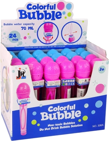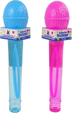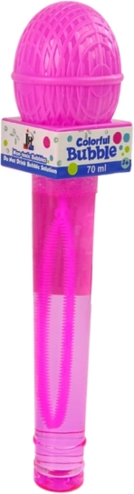 Unterhaltsames Seifenblasen-Spielzeug in Mikrofonform mit einem Volumen von 70 ml, das regenbogenfarbene Blasen zaubert und Kinder nach draußen an die frische Luft lockt. Dank des bequemen Griffs und der einfachen Handhabung genügt es, den Stab herauszuziehen und zu pusten oder zu schwenken. Erhältlich in zwei Farben – Blau und Rosa. Geeignet für Kinder ab 3 Jahren, ungiftig und zertifiziert nach CE, EN 71.