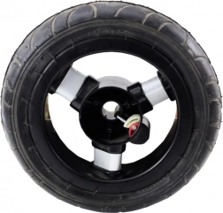 Der Reifen mit Ventil dämpft Unebenheiten effektiv und verbessert sowohl den Komfort des Kindes als auch die Handhabung des Kinderwagens auf unterschiedlichen Oberflächen.