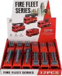 Plastik-Feuerwehrauto 11 cm mit Rückzug, 4 Varianten, Box mit 12 Stück