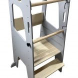 Der Lernturm ist ein multifunktionales und praktisches Möbelstück, das die Selbstständigkeit und motorischen Fähigkeiten von Kindern fördert. Dank der cleveren Form und der Umrandung um die Standfläche fühlt sich das Kind stabil und sicher, während die Eltern stets alles im Blick behalten. Der Turm lässt sich leicht an der Küchenzeile oder Arbeitsplatte verschrauben, sodass er stets fest an einer festen Gegenfläche gegenüber der Einstiegstufe steht.