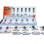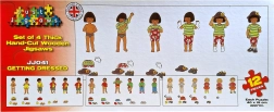 Das Holzpuzzle-Set von Just Jigsaws stellt vier Figuren vor, die die Kinder nach und nach anziehen, wodurch sie auf spielerische Weise logisches Denken und die Namen der einzelnen Kleidungsstücke üben.