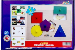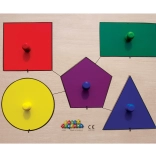 Dieses Holz-Brettpuzzle ist durch seine Lern- und Spielwertigkeit außergewöhnlich. Es enthält 5 geometrische Öffnungen für farbige Teile, die Griffe für komfortables Halten haben.