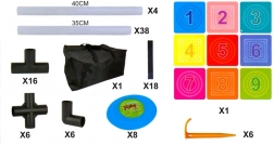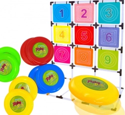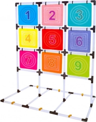 Dieses Komplettset zum Werfen von Scheiben auf eine Zielscheibe bietet aktive Unterhaltung für Einzelspieler und Gruppen. Der stabile Rahmen mit einem Gitter aus neun farbigen, nummerierten Feldern unterstützt das Zahlenlernen, die Wettkampffreude und den Teamgeist. Das Spiel fördert Fein- und Grobmotorik, Distanzgefühl und Wurfgenauigkeit.