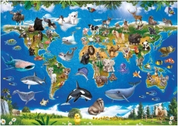 Das fröhliche Kinderpuzzle mit Weltkarte und Tieren ist eine hervorragende Hilfe beim Lernen von Geografie und beim Kennenlernen der Fauna der einzelnen Kontinente. Dank der 100 XL-Teile lässt es sich auch mit kleinen Händen bequem legen und das farbenfrohe Motiv fesselt Kinder sofort.