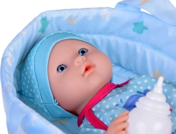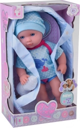 Dieses Set enthält alles, was kleine Eltern zur Pflege ihrer Puppen benötigen - eine Puppe mit realistischen Gesichtszügen, einen praktischen Tragegurt und eine Flasche zum Füttern. Die Puppe hat blaue Augen und trägt ein blaues Outfit mit Walmotiv, was dem Spiel um die Pflege des Kindes Authentizität verleiht. Nach dem Trinken aus der Flasche kann die Puppe 'pinkeln', was sie nicht nur zu einem Spielzeug, sondern auch zu einem unterhaltsamen Lernwerkzeug für kleine Kinder macht.