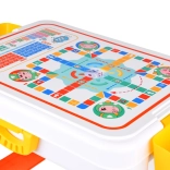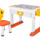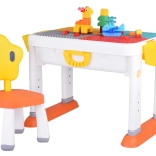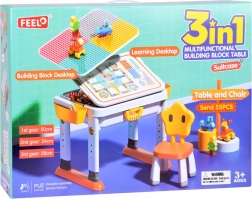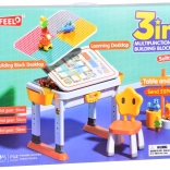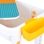 Entdecken Sie ein praktisches Kinderset, das mit Ihrem Kind mitwächst. Der 3-in-1-Tisch bietet zwei Funktionsflächen – eine Seite mit Noppen für Bausteine und eine glatte Seite zum Schreiben, Zeichnen, Spielen und Essen. Dank der verstellbaren Beine (bis ca. 57 cm) passt er sich leicht dem Alter des Kindes an, während seitliche Taschen Stifte, Bausteine oder Kleinigkeiten stets griffbereit halten.