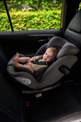 Die Möglichkeit der 360°-Drehung ermöglicht einen bequemen Zugang zum Kind, unabhängig von der Sitzrichtung. Dies erleichtert das Platzieren und Herausnehmen des Kindes aus dem Sitz.