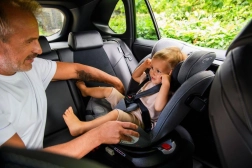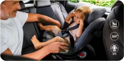 Der MoMi EMI bietet eine 360° Drehung, die eine einfache Installation entgegen und in Fahrtrichtung ermöglicht. Er umfasst seitliche Schutzvorrichtungen SIPS, 11 Positionen der Kopfstütze und 6 Neigungsstufen für maximalen Komfort und Sicherheit. Zusätzliche Sicherheit bietet das Befestigungssystem TOP TETHER.