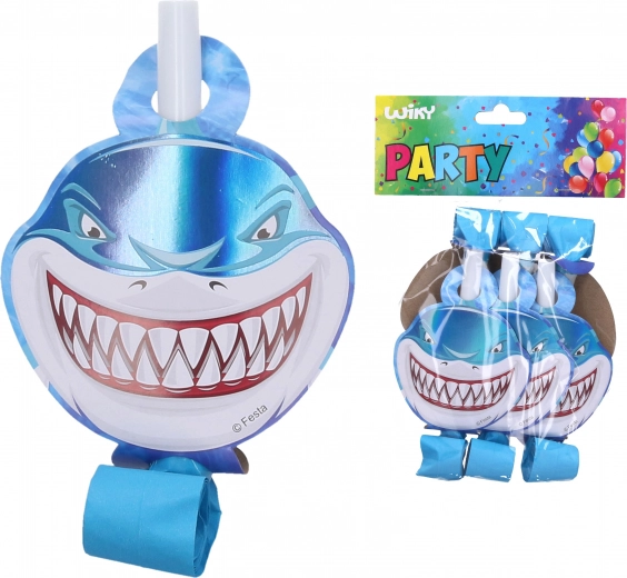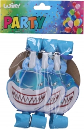 Stylische Partytröten mit Hai-Motiv verleihen jeder Feier die richtige Atmosphäre. In der Packung sind 6 Stück – ideal für die Geburtstagsparty und Mottofeiern.