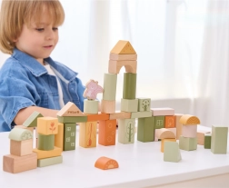 Verschiedene Formen und Größen ermöglichen es Kindern, Türme, Häuser und Brücken zu bauen und dabei spielerisch Feinmotorik und Geduld zu entwickeln.