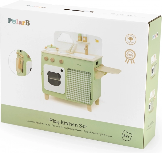 Die stilvolle Kinderküche in angenehmen Natur- und Grüntönen bietet Kindern ein realistisches Kocherlebnis. Dank der robusten Holzkonstruktion, drehbaren Knöpfe, Spüle und Backofen genießen kleine Köche stundenlang sicheres und kreatives Spiel. Die praktische klappbare Seitenablage vergrößert die Arbeitsfläche zum Schneiden oder Essen, während der Schrank mit Vorhang alle Schätze verstaut.