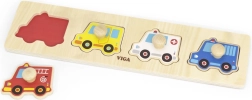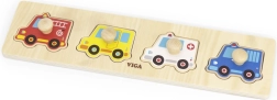 Dieses hochwertige Holzpuzzle mit vier Fahrzeugen (Feuerwehrauto, Taxi, Krankenwagen und Polizeiauto) ist eine hervorragende Wahl für erste Logikspiele. Teile mit praktischen Knopfgriffen erleichtern die Handhabung und motivieren Kinder zum wiederholten Einsetzen und Entdecken.