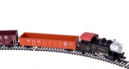 Diese elektrische Modelleisenbahn im Maßstab H0 (1:87) bildet eine echte Dampflok originalgetreu nach, einschließlich detailliertem Fahrwerk und realistischer Beschriftung. Für Stabilität in Kurven sorgen die ausgewogene Lokomotive und ein hochwertiges Fahrwerk. Zwei Güterwagen mit drehbaren Achsen durchfahren Kurven sanft und ermöglichen den Transport kleiner Lasten.