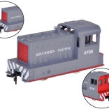 Dieses elektrische Güterzugmodell bildet eine echte Lokomotive originalgetreu nach, inklusive SOUTHERN PACIFIC-Bedruckung und detaillierten Elementen. Die Lokomotive ist zusätzlich beschwert für bessere Haftung und Stabilität in Kurven, die Wagen verfügen über drehbare Achsen für sanftes Durchfahren von Bögen, und das Kuppeln gelingt dank Haken/Verbinder mühelos.
