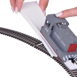 Im Lieferumfang enthalten sind Metallschienen mit Kunststoffschwellen, präzise graviert für ein realistisches Erscheinungsbild. Das modulare Steckschienensystem hält sicher zusammen und lässt sich mit weiteren Sets derselben Serie kombinieren. Außerdem dabei: ein praktischer Aufgleiser für das einfache Aufsetzen der Fahrzeuge auf das Gleis.