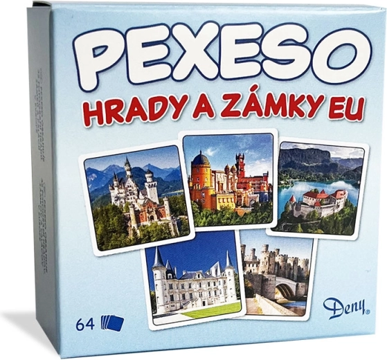 Pexeso Burgen und Schlösser EU ist die ideale Wahl für Kinder und Erwachsene, die gerne kombinatorische Spiele spielen. Nach dem Ausschneiden enthält das Spiel 32 Bildpaare, die sich die Spieler merken und finden müssen.