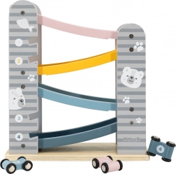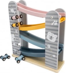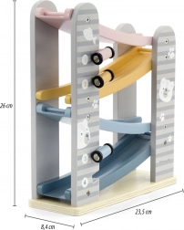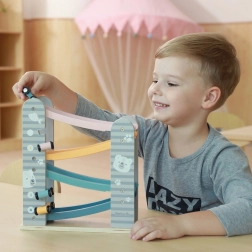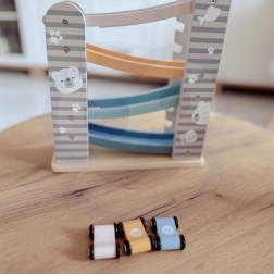 Diese Holzrennbahn bietet stundenlangen Spaß und fördert die Fähigkeiten von Kindern. Sie ist speziell für kleine Kinderhände konzipiert und es besteht keine Gefahr durch scharfe Kanten. Enthält: