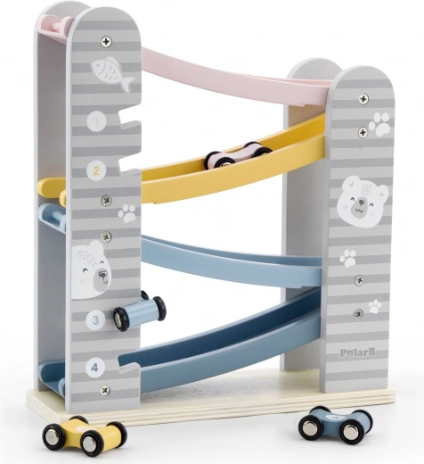 Diese Holzrennbahn bietet stundenlangen Spaß und fördert die Fähigkeiten von Kindern. Sie ist speziell für kleine Kinderhände konzipiert und es besteht keine Gefahr durch scharfe Kanten. Enthält: