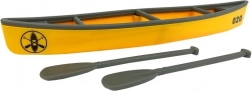 Zum Set gehören ein gelb‑graues Kajak und zwei Paddel. Er lässt sich leicht auf dem Autodach befestigen – bereit für Wassermissionen in der kindlichen Fantasie.