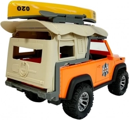 Auf zu imaginären Ausflügen in die Natur mit dem Camping‑Auto JEEP in Orange und dem stylischen gelb‑grauen Kajak. Dank Licht und Sound wirkt die Fahrt realistisch, öffnende Türen und Heckklappe laden zur Erkundung des Innenraums ein, und die Gummireifen kommen mit unterschiedlichsten Untergründen im Kinderzimmer zurecht.