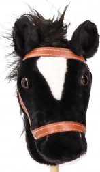 Der realistisch gestaltete Pferdekopf mit braunem Zaumzeug und weißem Abzeichen verleiht dem Kinderspiel Authentizität und Spaß.