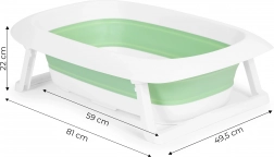 Dank klappbarer Beine und flachem Profil lässt sich die Wanne im Handumdrehen zusammenklappen und im Schrank verstauen oder an einen Haken hängen. Rutschfeste Füße und eine rutschhemmende Bodeneinlage helfen, Wanne und Baby stabil und sicher zu halten.